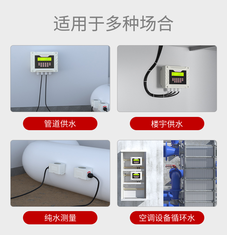 j9真人第一品牌FSC400壁挂式超声波流量计适用于在工业环境下连续测量绝大多数不含高浓度悬浮 粒子或气泡的单一均匀液体的流量,支持热量积算功能,在超声波流量 计基础上加配一对温度传感器而实现热量计量功能。本产品可广泛应用 于石油、化工、电力、食品和其他工业领域中。分为外夹式和插入式;测量不受管壁和管衬材料限制。咨询热线400-152-17818